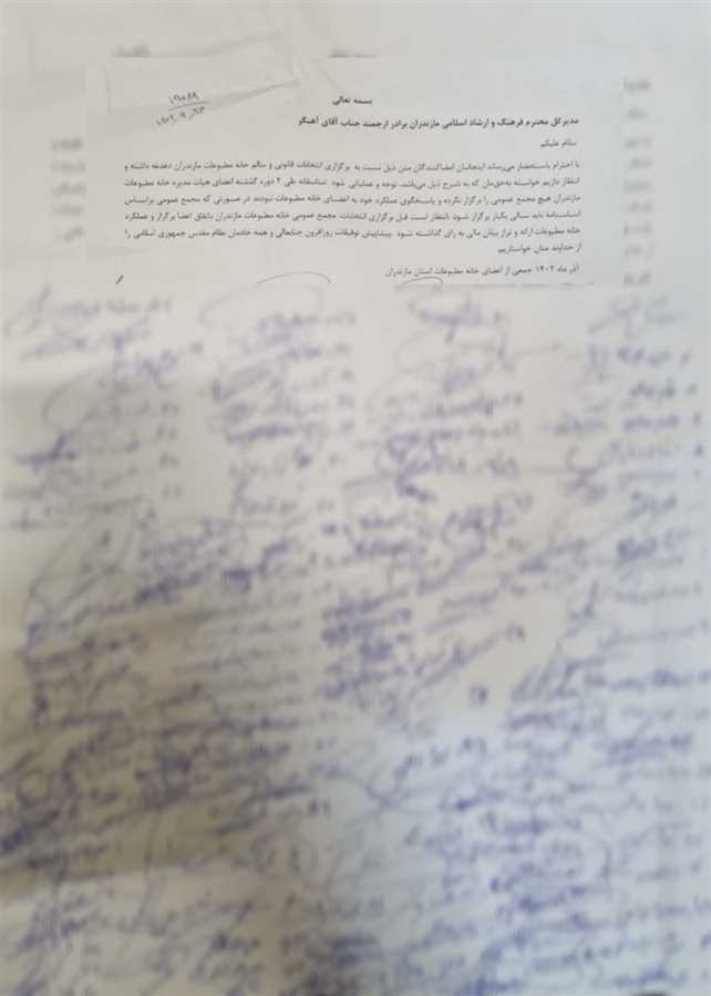 در این مکتوب که خطاب به مدیرکل فرهنگ و ارشاد اسلامی مازندران تهیه شده است، آمده: اینجانبان امضاکنندگان متن ذیل نسبت به برگزاری انتخابات قانونی و سالم خانه مطبوعات دغدغه داشته و انتظار داریم به خواسته قانونیمان که همان برگزاری مجمع عمومی است، توجه شود.